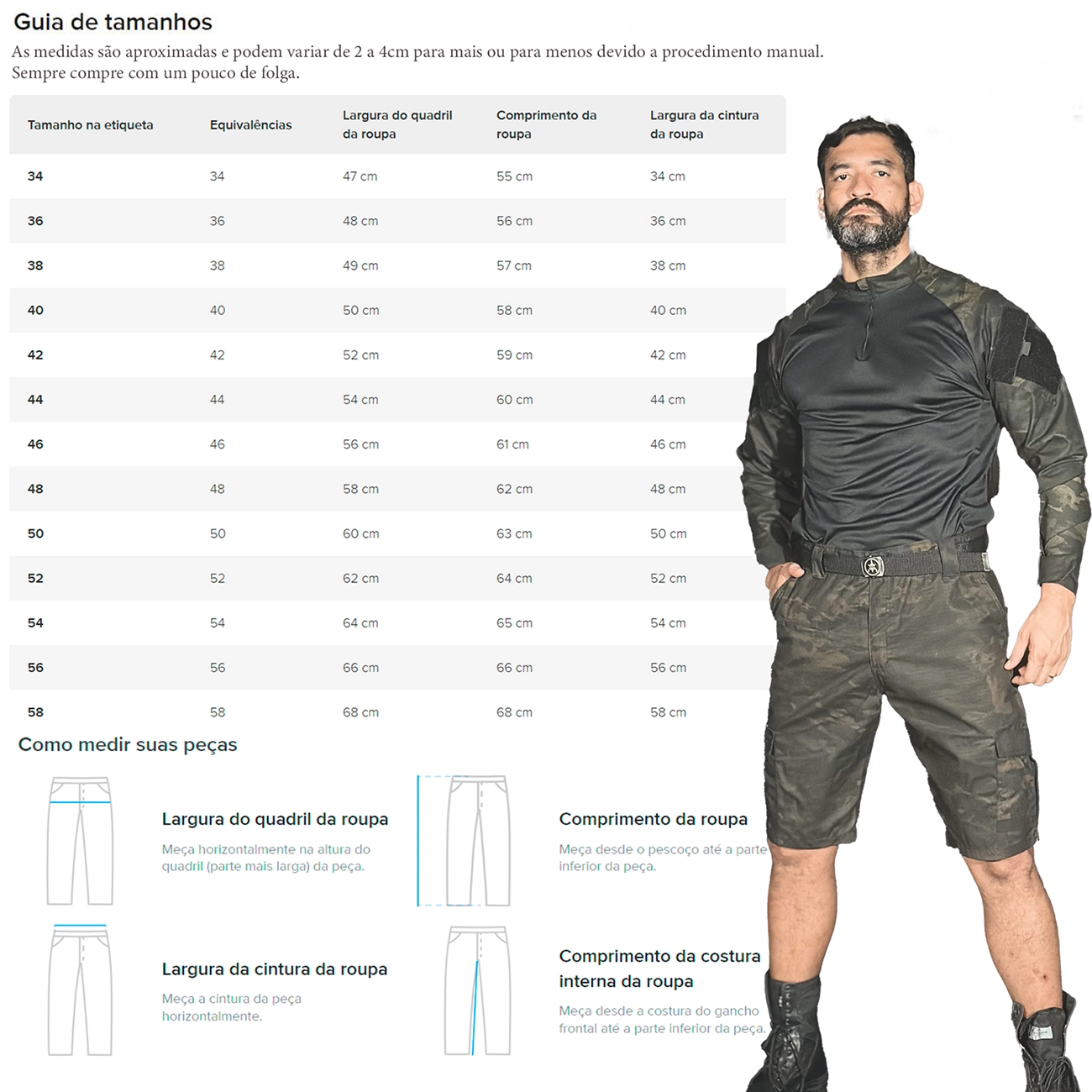 ✔ Tecido RipStop (70% poliéster / 30% algodão) — resistência ao desgaste