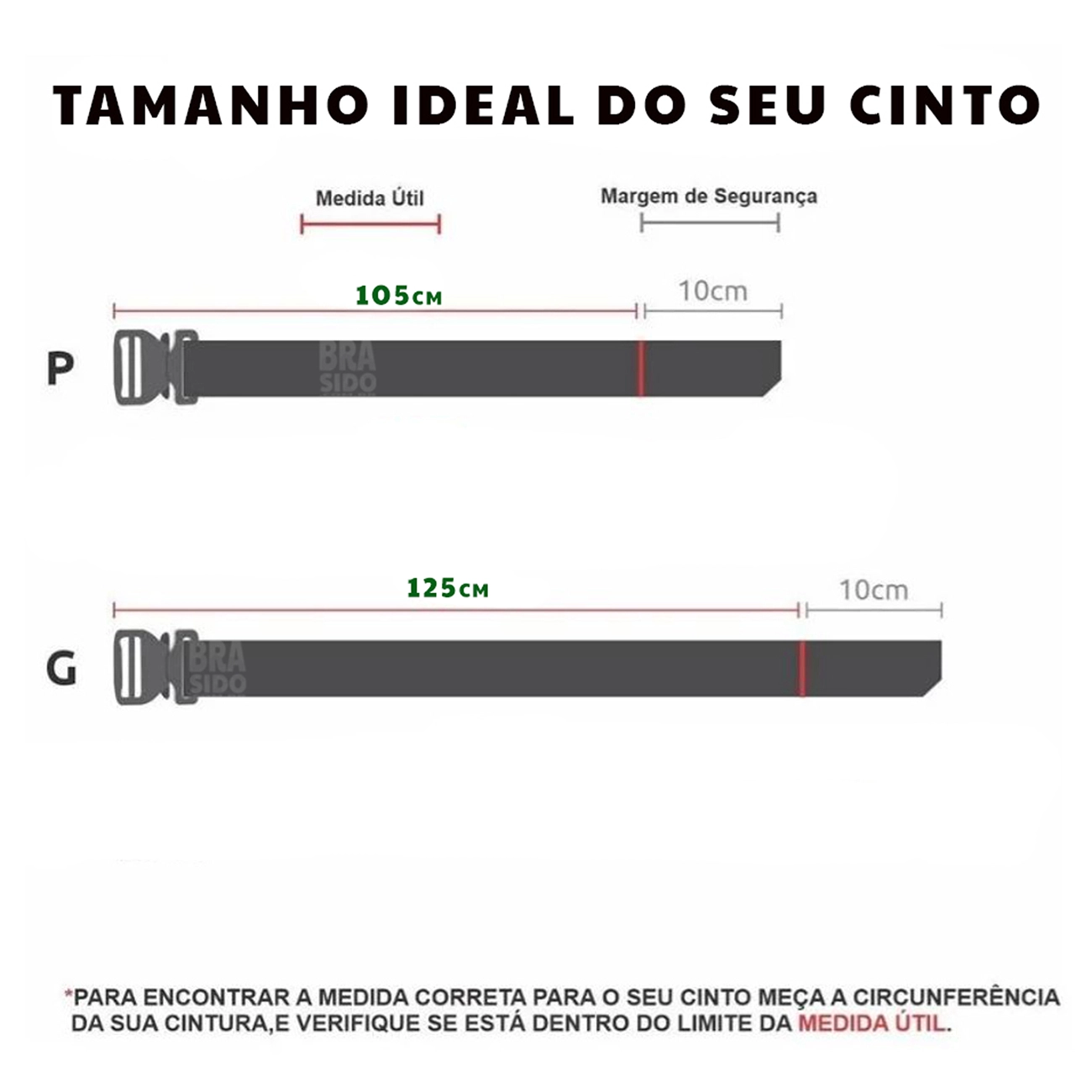 ✔ Fivela com 3 pontos de retenção — maior estabilidade no uso