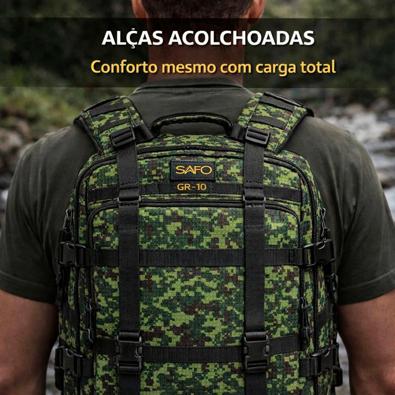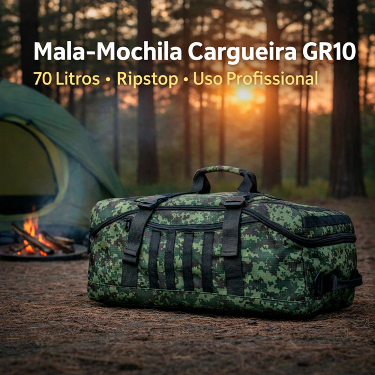 A Mala Mochila Cargueira GR10 Safo 70L é um equipamento desenvolvido para oferecer grande capacidade de armazenamento, organização e versatilidade de uso, sendo uma excelente opção para lojistas que atuam nos segmentos outdoor, viagem e tático.