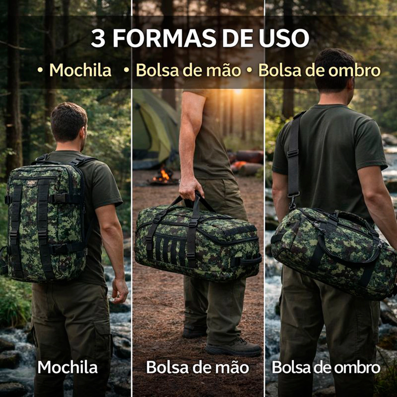 ✔ Versatilidade de uso (viagem, outdoor e tático)