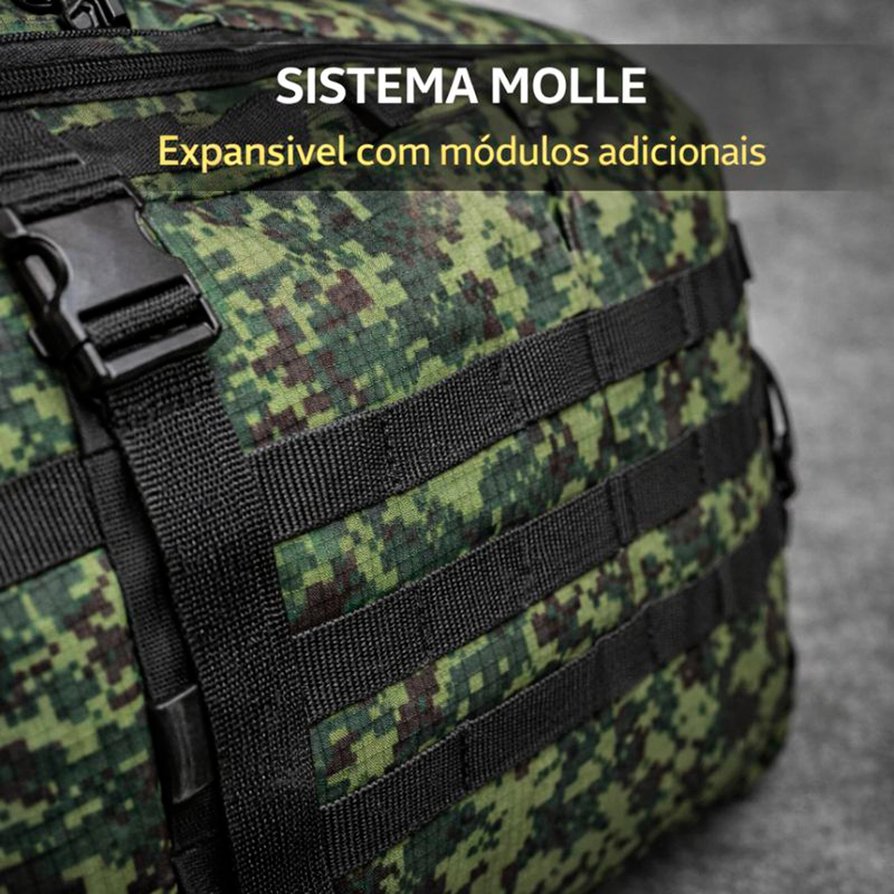 ✔ Sistema MOLLE — possibilidade de acoplar acessórios
