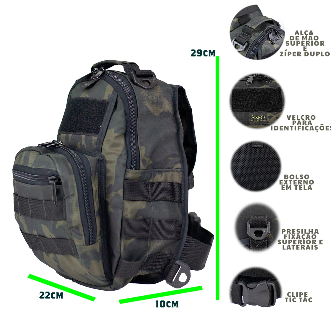 A Pochete Tática Transversal Safo é um item versátil desenvolvido para oferecer praticidade, organização e mobilidade, sendo uma excelente opção para lojistas que atuam nos segmentos tático, urbano e outdoor.